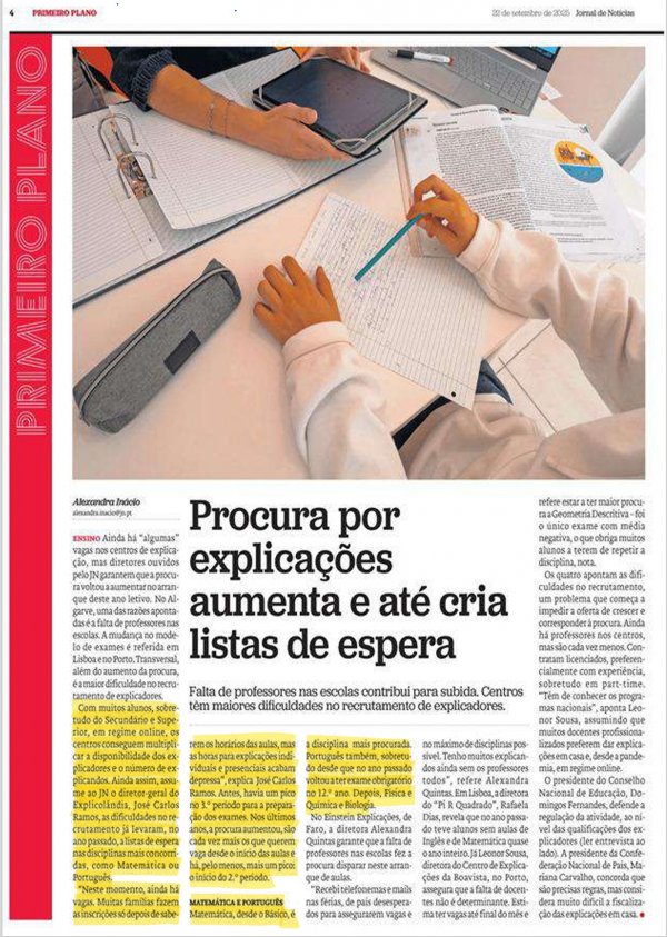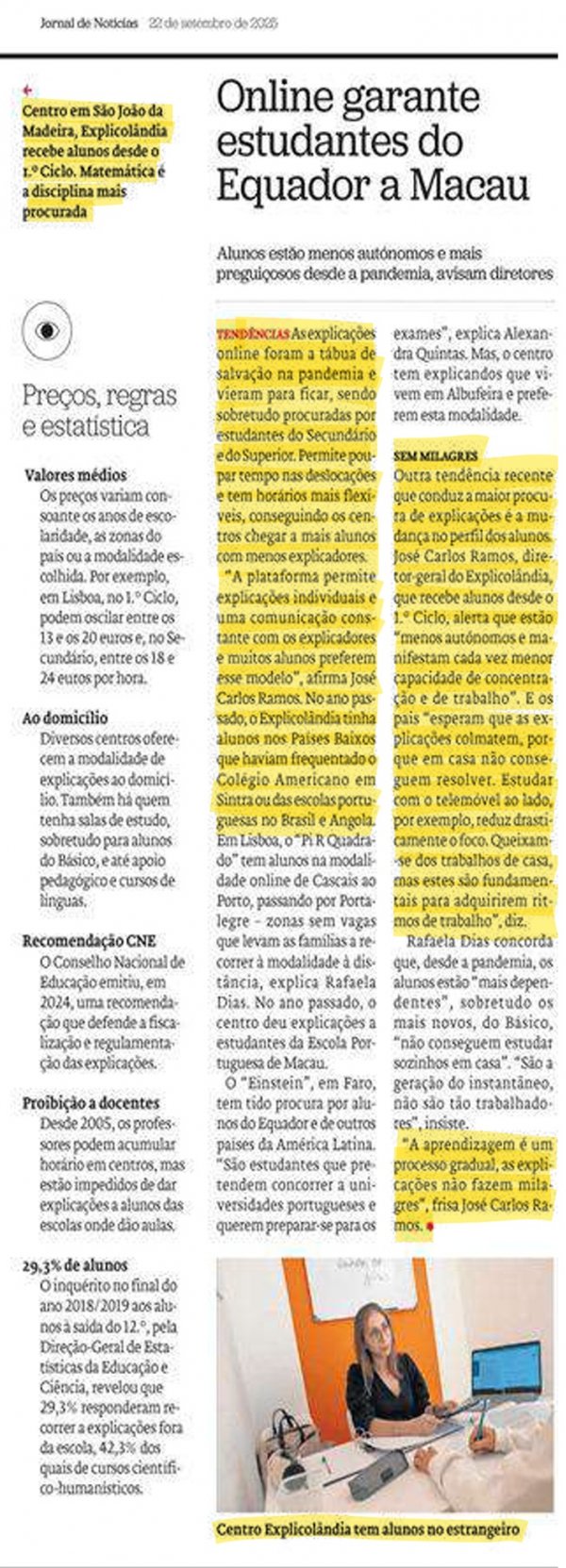 A EXPLICOLÂNDIA em destaque no Jornal de Notícias, de 2ªfeira, dia 22 de Setembro, através do testemunho do Diretor de Franchising, José Carlos Ramos, sobre o inicio do ano letivo, com uma reportagem fotográfica realizada na EXPLICOLÂNDIA São João da Madeira.